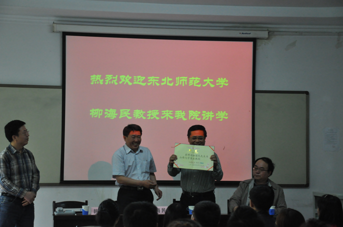 6165cc金沙总站检测中心副院长陈平水教授主持了受聘仪式。他先对柳海民教授的到来表示热烈的欢迎,而后介绍了柳教授的工作经历和学术贡献。随后,6165cc金沙总站检测中心院长侯怀银教授受金沙校长贾锁堂教授的委托,向柳海民教师颁发了聘任证书。柳海民教授作了简短的讲话后,开始了自己的学术报告——“关于教育学的学科思想”。