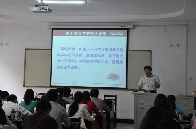 柳海民教授从自己求学的经历谈自己为什么要讲这样一个题目,然后顺势引出“学科思想”的概念,即关于一门学科知识或学科内容构成的认识、主张或观点,亦可称之为一门学科知识构成的逻辑主线、逻辑架构或诠释架构。接着,柳海民教授从教育学学科发展的历史,教育学的研究对象,教育学的学科内容构成,教育学的学科定位,教育学的学科体系,教育学的逻辑起点,教育学、教育学原理与教育原理的联系与区别七个方面分别加以介绍,向我们展示了其对于“教育学讲了什么”的问题的理解与见解。讲座期间,柳海民教授用其浓厚的东北口音,结合自己多年的教育工作经历,向我们展示了其对于“教育学讲了什么”的回答,柳教授严密的逻辑、严谨的态度、幽默的语言、深厚的学术造诣给在座的每一个聆听者留下来深刻的印象。